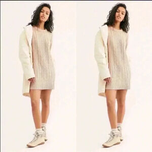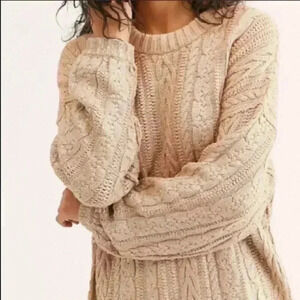New without tags! Free People cream puff matte gold sweater dress. Gorgeous oversized cable knit sweater designed with subtle gold metallic thread accent for that perfect shine all season long.