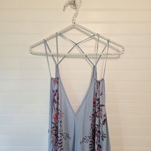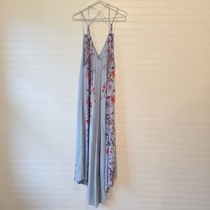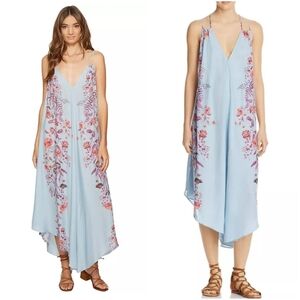 Free People Ashbury Blue Floral Print Midi Sun Slip Dress Medium Sundress