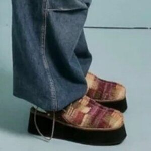 Free People Astro Platform Mules in Red Plaid Size 9.5 NWT