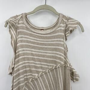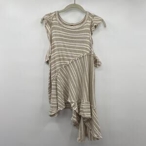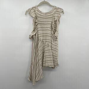 Free People Asymmetrical Knit Linen Blend Striped Tunic Sweater Top Womens XS