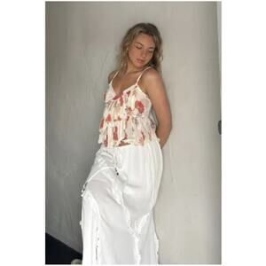 Free People Asymmetrical Spaghetti Strap Top Cream + Floral Women Sz Med