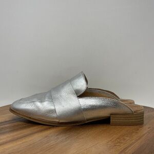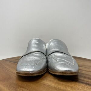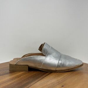 Free People At Ease Loafer Mule Flat Silver Metallic Leather Women's US 6 EU 36