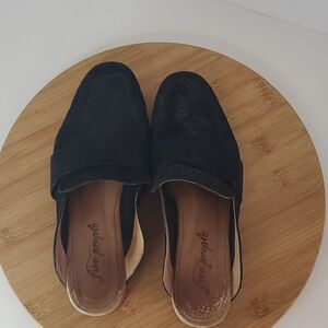 Free People At Ease Black Snake Loafer Mule Flat Leather