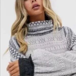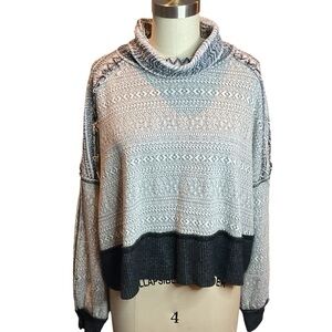 Free People at the lodge cropped cowl neck turtleneck sweater -grey multicolored -cropped length -oversized look -pit to pit 26” -total length 19.5”