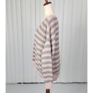 Free People At the Beach Oversized Chunky Knit Pullover Sweater Pink Gray Medium