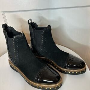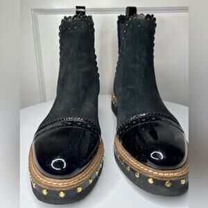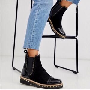 Free People Atlas Black suede and patent leather studded Chelsea boots EU 37/6.5