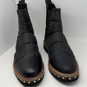 Free People Atlas Chelsea Leather Puffer Upper Ankle Boots Black Size 37.5-38.5