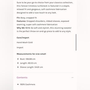 Free People Aubrey Cashmere Turtleneck Cashmere Sweater Size XS NWT