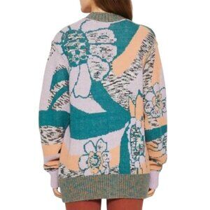 Free People August Orchid Teal Combo Chunky Knit Wool Oversized Cardigan