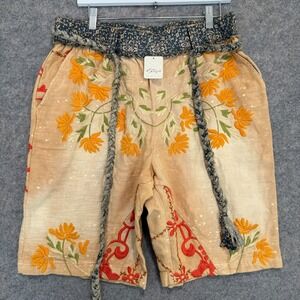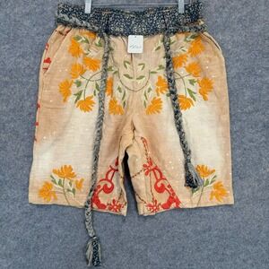 Free People Augusta Embroidered Pull On Shorts Womens Large Tie Bohemian Floral