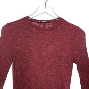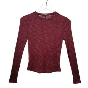 Free People Aura Burgundy Ribbed Knit Long Sleeve Women’s Layering Top Sz XS