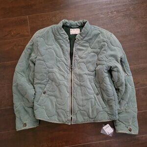 Free People Aura Liner BomberJacket Women L Boho Indie Grunge Green Hipster Y2K