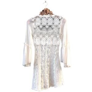 Free People Aurora Cream Crochet Knit Bell Sleeve Mini Dress xs