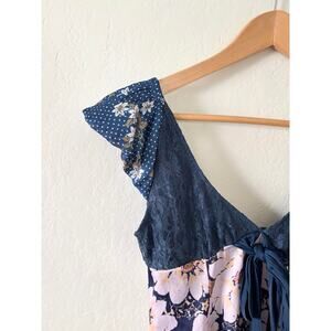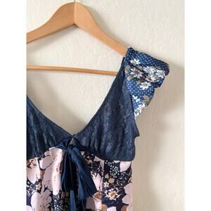 Free People Aurora Mini Dress Blue Lace Floral Satin Size XS