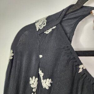 Free People Austin Emma Embroidered Tunic Dress Black Gauze Long Sleeve Boho XS