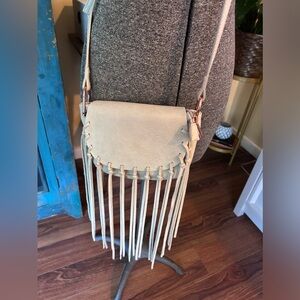 Light gray boho fringe, Free people crossbody bag. Real cow suede. Rose gold hardware. Adjustable strap. Two inside open pockets. Non smoker home. Some wear but otherwise in great condition.