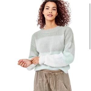 Free People Autumn Sky Cloud Combo gray blue striped wool blend sweater Small