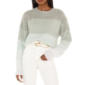 Free People Autumn Sky Olive Ombré Fuzzy Knit Pullover Sweater Medium