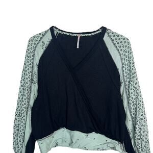 Free People Auxton Long Sleeve Thermal Wrap Top Black Combo Womens XS