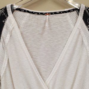 Free People Auxton Thermal Waffle Black White Floral Print Oversized Top XS