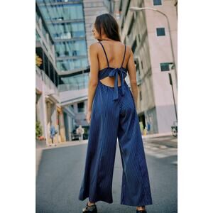 Free People Ava One-Piece Wide Leg Blue Pin Stripe Jumpsuit Size XS
