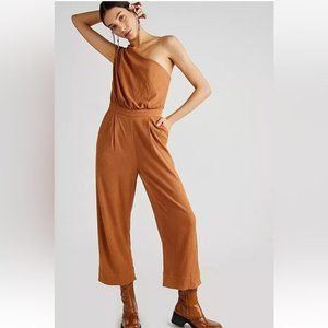 Free People Avery Jumpsuit One Shoulder Wide Leg Pocket Zip Size 4 NWOT