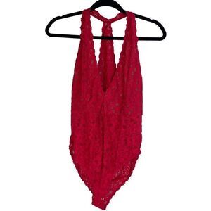 Free People Avery Red Floral Lace Plunging Racerback Bodysuit Size L New