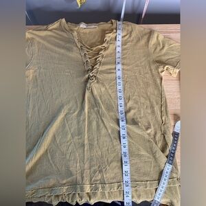 The string is coming apart that laces up the front of shirt. Still wearable but they are coming undone
