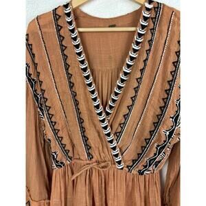 Free People Aztec Print Romper Size XS Brown Boho Festival Hippie Plunge Neck