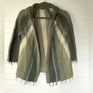 Free People Aztec Stripe Fringe Hoodie Knit Cardigan Wool Blend S/P Open hood Sweater Jacket