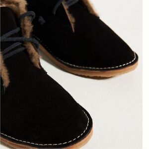 Free People BEEK Penguin Shearling-Lined Booties Ankle Boots Black Suede US 7