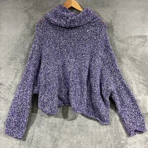 Free People BFF Pullover Sweater Purple Grape Plush Cowl Neck Boxy Oversized Sm
