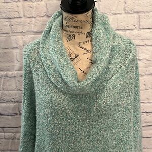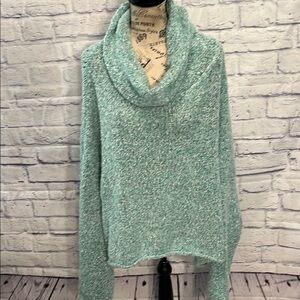 Free People BFF Sweater Aqua Star Cowl Drop Shoulder Sleeves Oversized Large