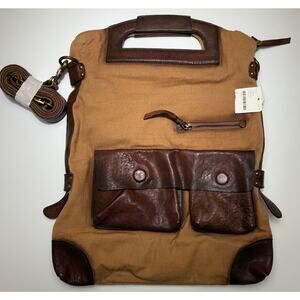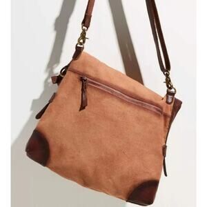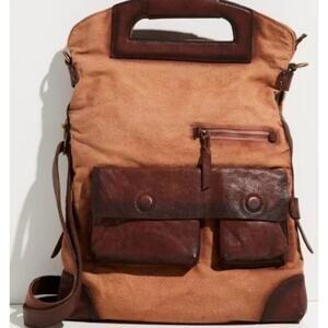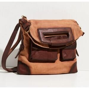 Free People BUSHWICK MESSENGER BAG Cargo Canvas Leather Terra Cott Tan Brown NWT