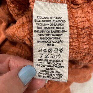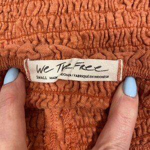 The Free People Babe Smocked Rust Tube Top is styled with smooth front buttons and a flouncy hem. It's in good condition and perfect for a chic, casual look. Measurements are available in pictures.