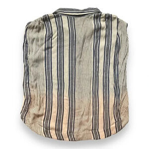 Tied at the shoulders and elegantly draped, this breezy tank is perfect for sun-filled afternoons. Creme to pink ombre with navy blue stripes; front button closure; spread collar; sleeveless. Lightweight, slightly sheer, 100% rayon.