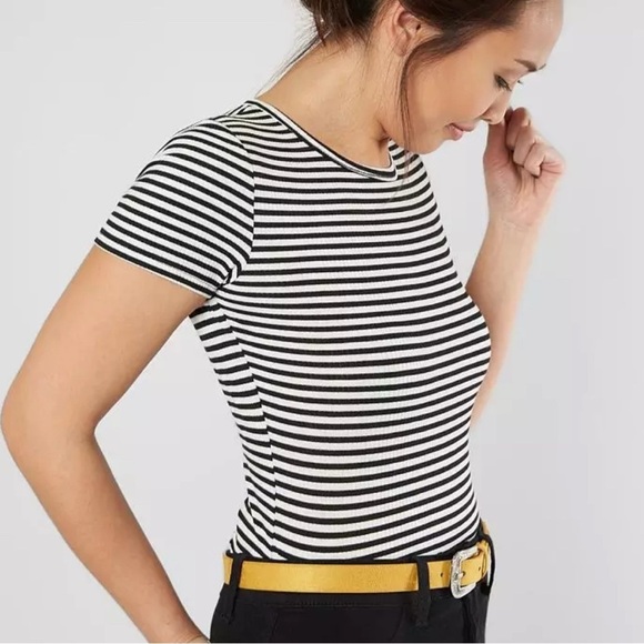 Free People Baby Ribbed Top Black White Stripe Tee Shirt Women XS NEW 698