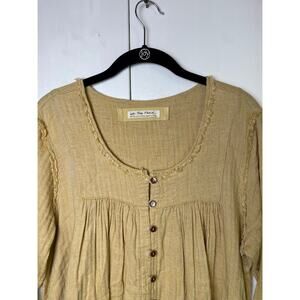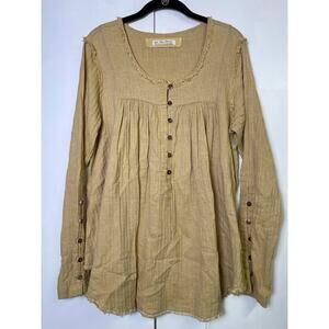 Free People Babydoll Henley Top Boho Edwardian Gauze Sand Dune Honey Size M