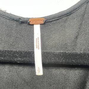 Free People women's bohemian black dress. V-neck. Long bell sleeves. Embroidered shoulders, sleeves, and hem. Lined. In good used condition. No stains, tears or holes.