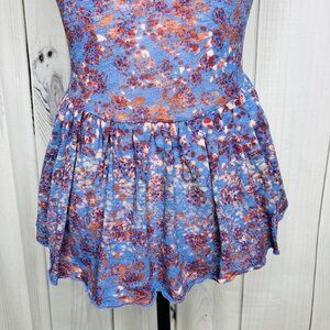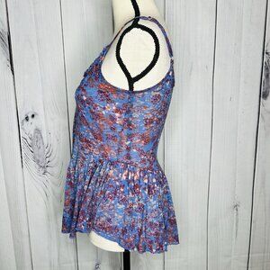 Free People Babydoll Peplum Tank Top Sz XS Blue Floral Bohemian Cottage