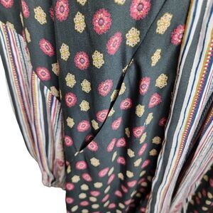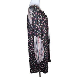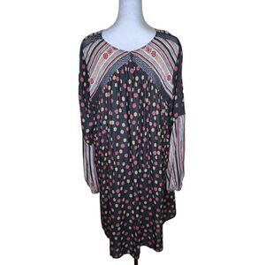 Free People Babydoll Tunic Dress Womens Size L Black Floral Stripe Long Sleeve L