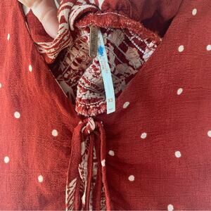 Free People Babylon River Red Clay Deep V Peplum Top XS