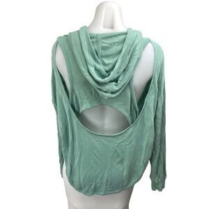 Free People Back Into It Green Cutout Back Hoodie Hooded Sweatshirt Top Size M