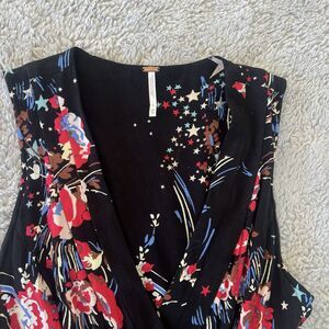 Free People Back To Basics Floral Tunic Wrap Blouse Flowers Stars Print Size XS