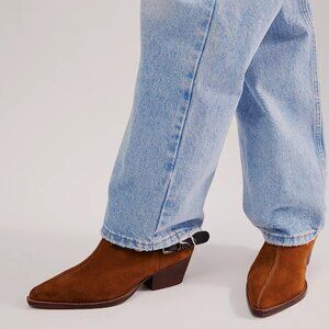 Free People Back-lace Sway Low Slouchy Boots in Burnt Caramel Suede NWOB Size 6