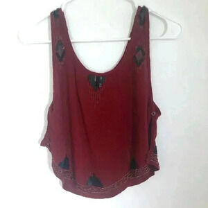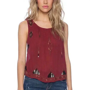 Free People Bad Girls Do it Well Rust Orange Embellished Tank Boho Chic Size XS