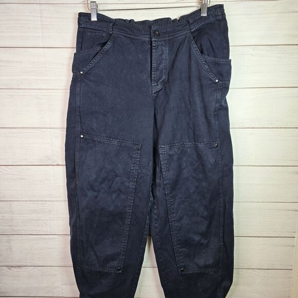 Free People Baggy Double Knee Navy Pants Women’s Size 6 Elastic Waist