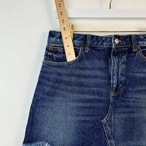 We The Free, Free People Baily Fringe Denim Mini Skirt Dark Wash Jean Skirt Size 29 Y2K Vibes, Raw Fringe Hem