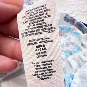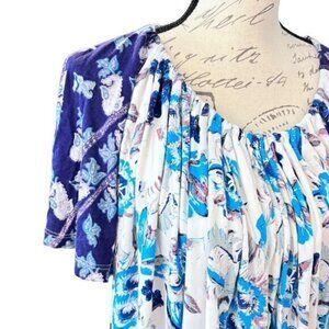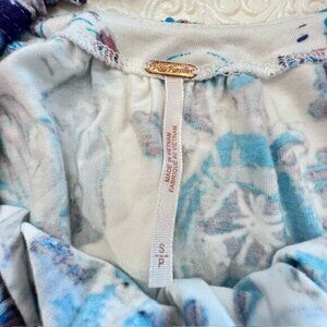 Free People Baja Babe Floral Tie Back Top Blue Cold Shoulder Size Small BOHO
