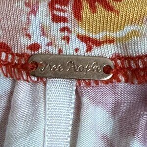 Free People Baja Babe Red Floral Print Tie Back Cold Shoulder Tee Top Jersey XS